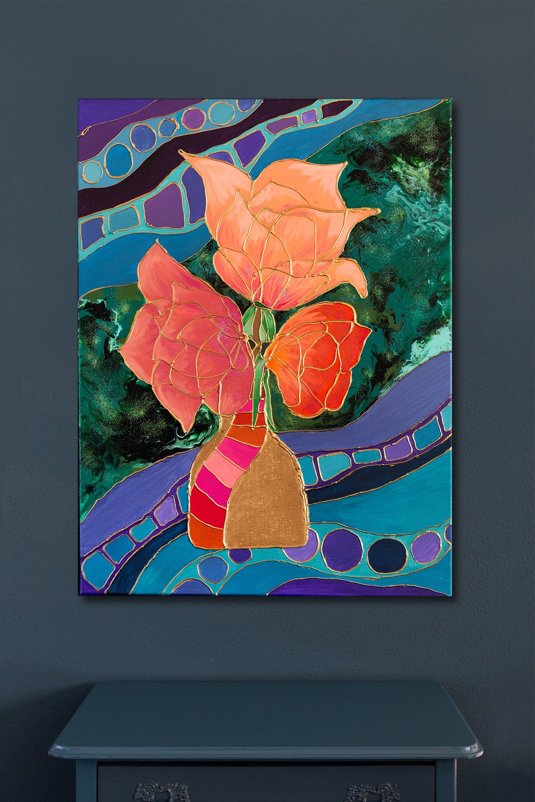 Mixed media met acryl op canvas
